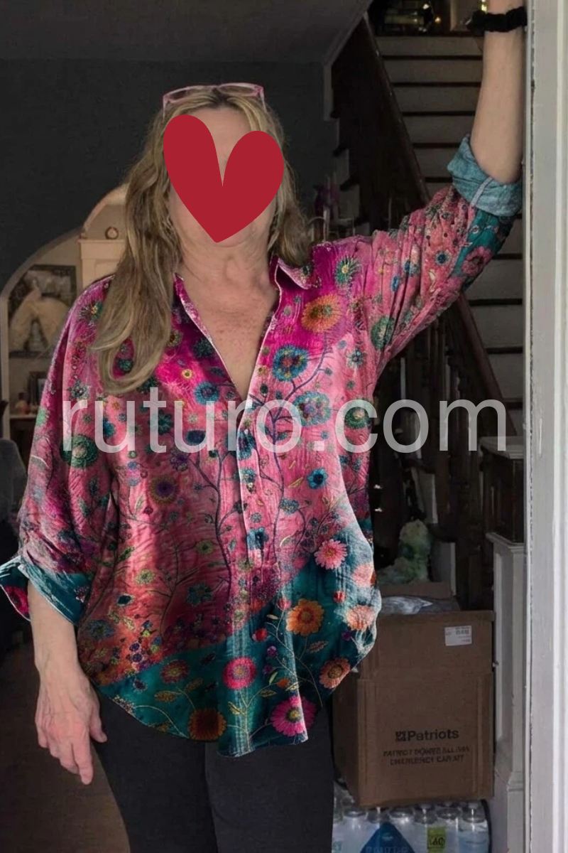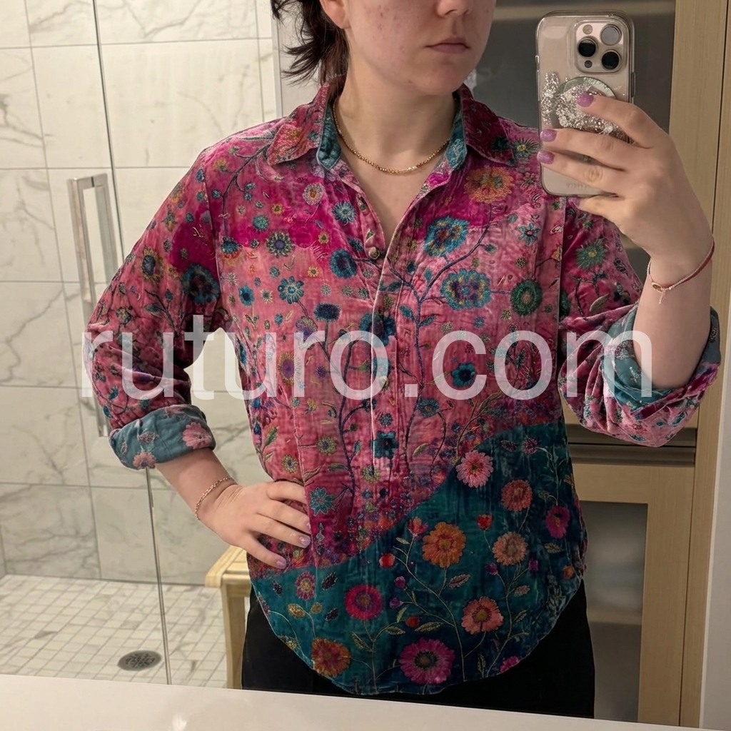 Yes!It runs true to the garment size chart please choose your size based on your measurements.This long-sleeve shirt features a colorful floral print with a bold purple and teal color block design. The relaxed fit and classic collar offer effortless style. Perfect for pairing with jeans or denim shorts. Ideal for bohemian-inspired looks. Lightweight and eye-catching for casual days.