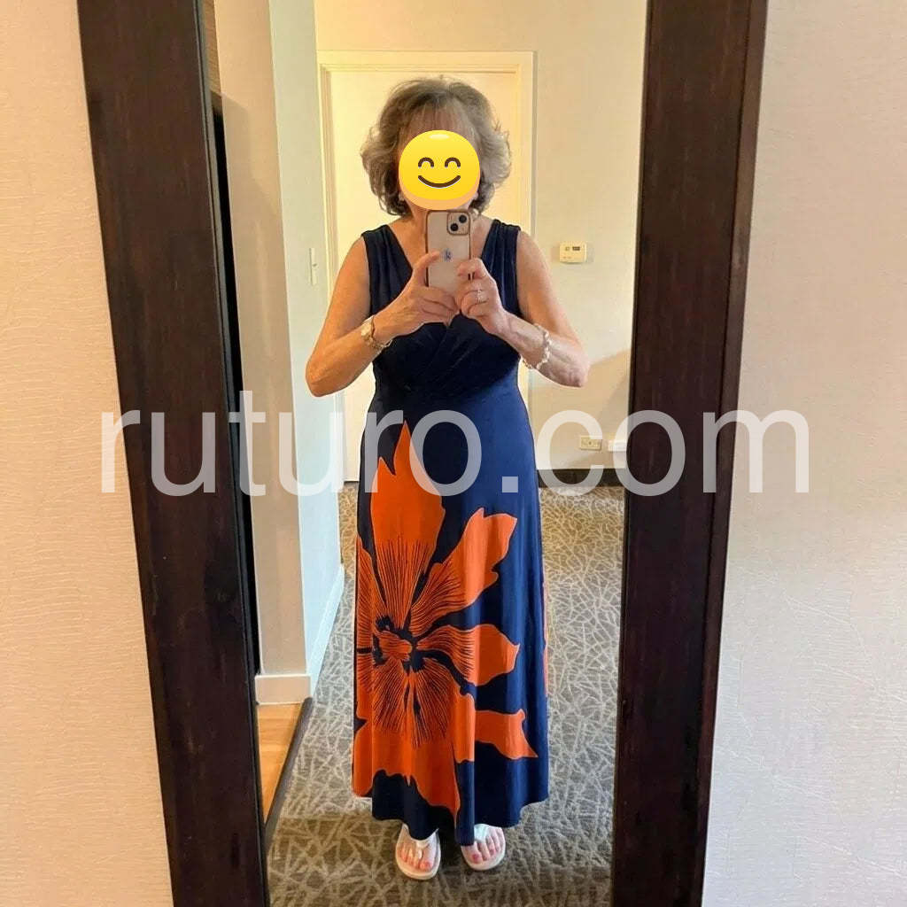 Yes!It runs true to the garment size chart please choose your size based on your measurements.Introducing our Elegant Floral Print Sleeveless V-Neck Maxi Dress. Designed for both sophistication and comfort, this dress features a stunning floral print and a flattering v-neck design. Perfect for any occasion, this maxi dress will be your go-to choice for a timeless and elegant look.