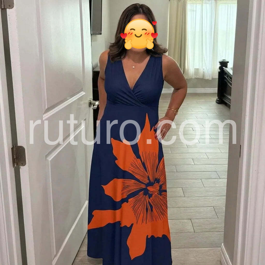 Elegant Floral Print Sleeveless V-Neck Maxi Dress