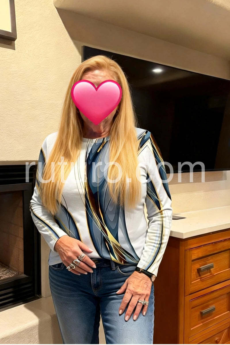 Stunning Geometric Print Round Neck Long Sleeve Top
