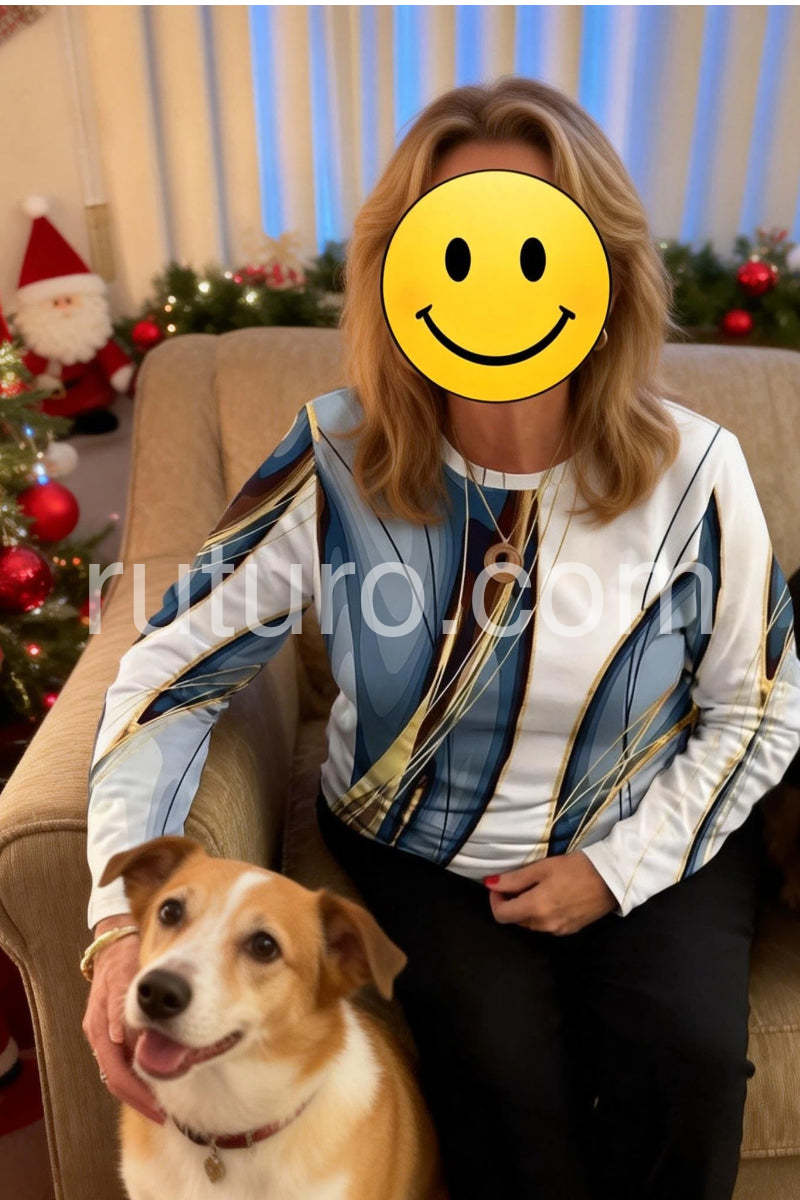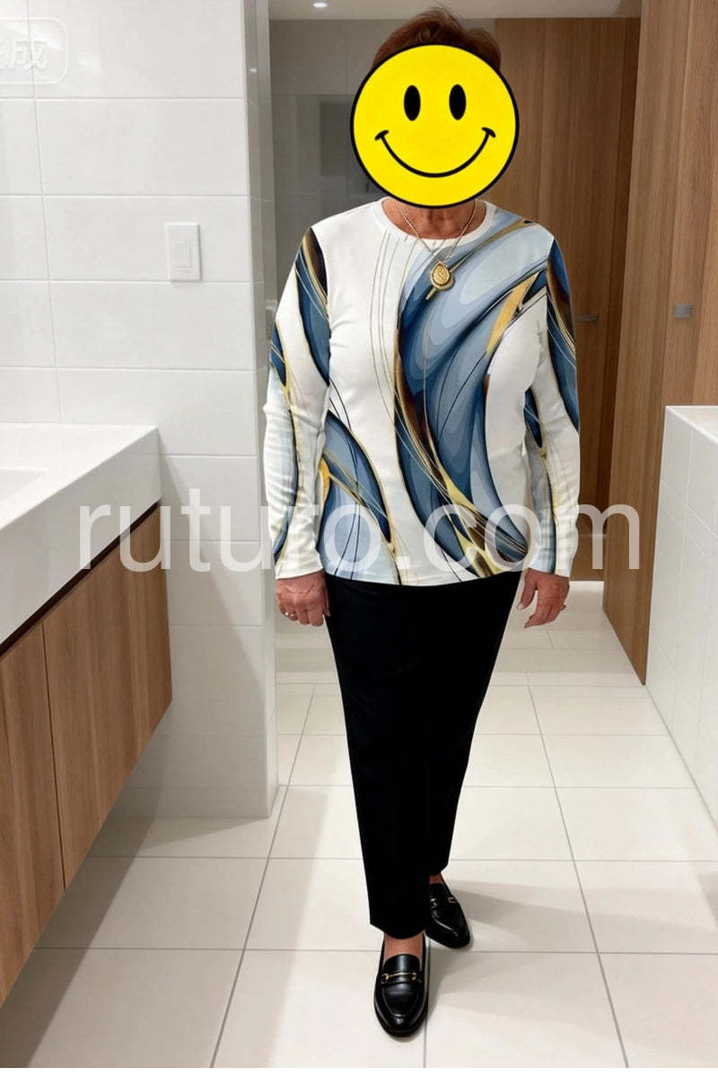 Yes!It runs true to the garment size chart please choose your size based on your measurements.Elevate your wardrobe with this Stunning Geometric Print Round Neck Long Sleeve Top. Designed with a modern geometric pattern, it offers a sophisticated look suitable for both professional and casual settings. The round neck and long sleeves provide comfortable coverage, making it ideal for layering or wearing alone. Crafted to combine style and practicality, this top enhances your outfit with a contemporary edge while ensuring all-day comfort.