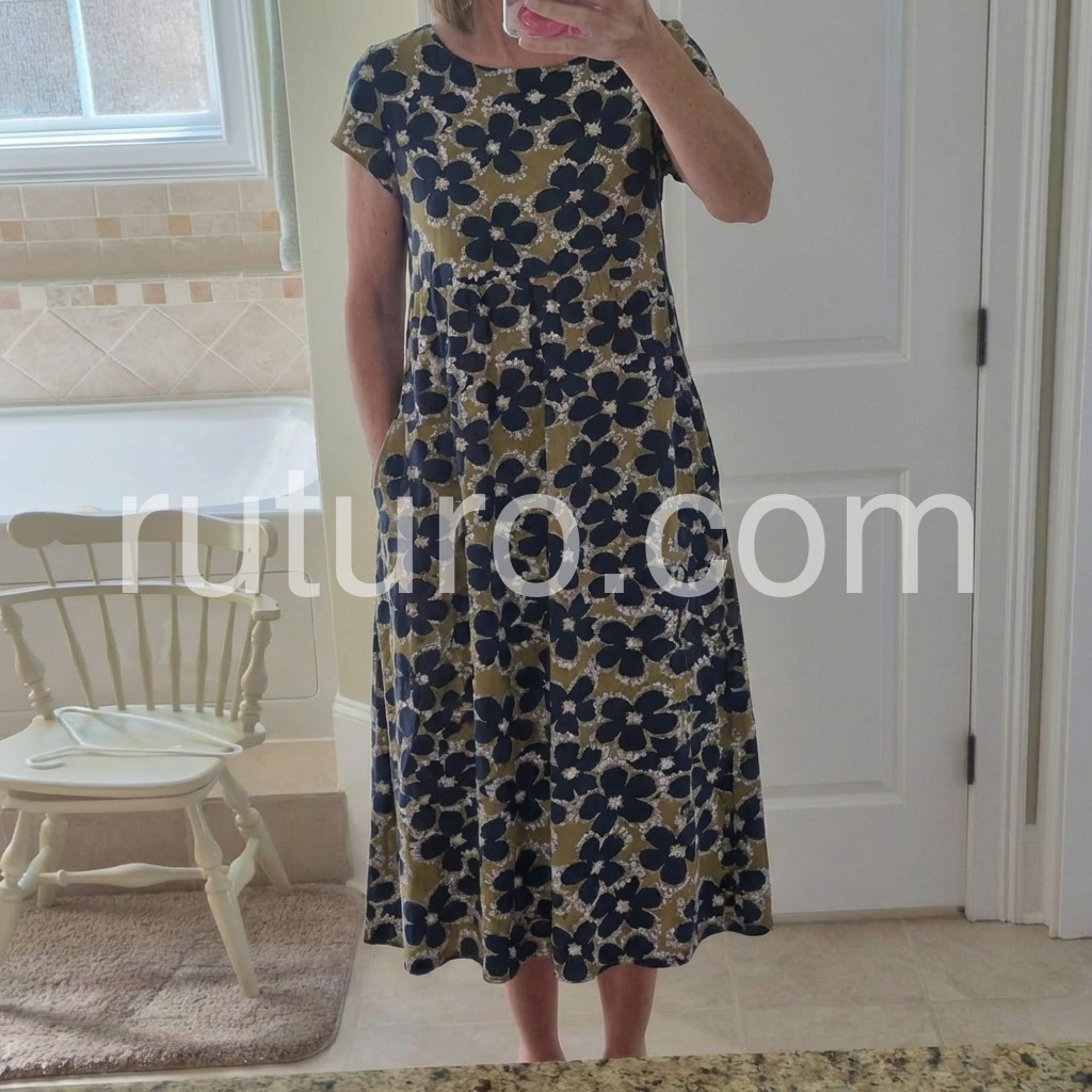 Modern Floral Print Short Sleeve Midi Dress