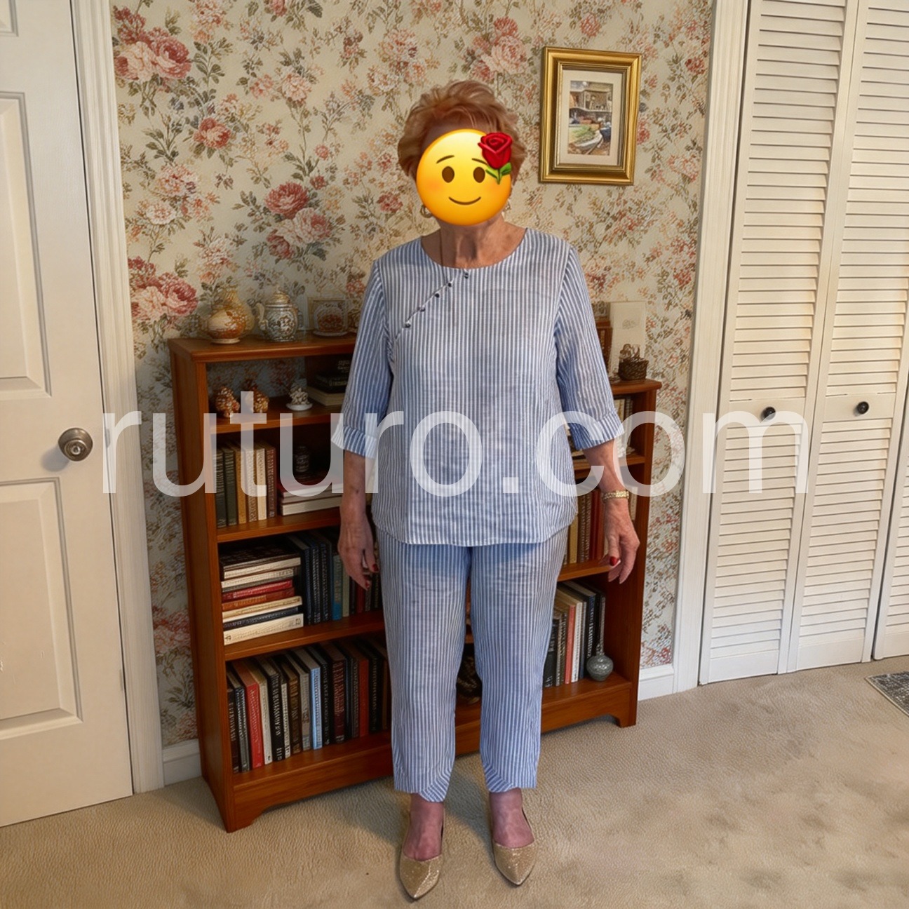 Yes!It runs true to the garment size chart please choose your size based on your measurements.This two piece set features a stylish blue print design, perfect for creating versatile and fashionable outfits. Made from high-quality materials, it offers both comfort and durability. Upgrade your wardrobe with this must-have ensemble.