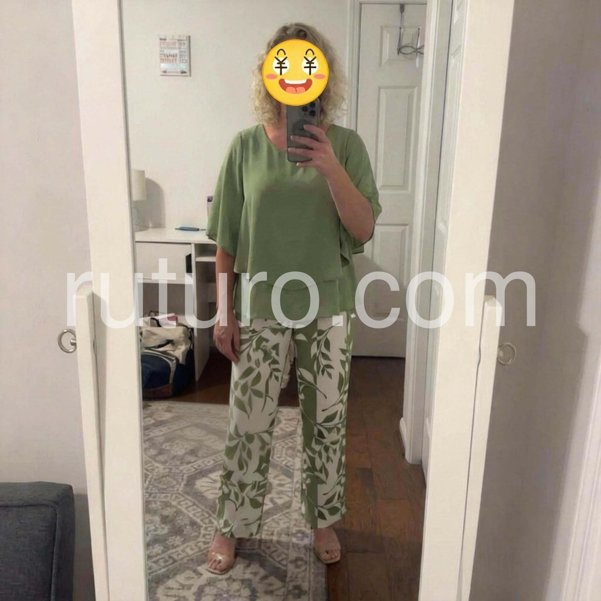 Yes!It runs true to the garment size chart please choose your size based on your measurements.Enhance your style with the Trendy Green Print 3/4 Sleeve Two Piece Set. This fashionable set features a trendy green print and 3/4 sleeves, providing a versatile and chic addition to your wardrobe. Made with high-quality materials, it offers comfort and durability while making a statement. Upgrade your fashion game with this must-have set!